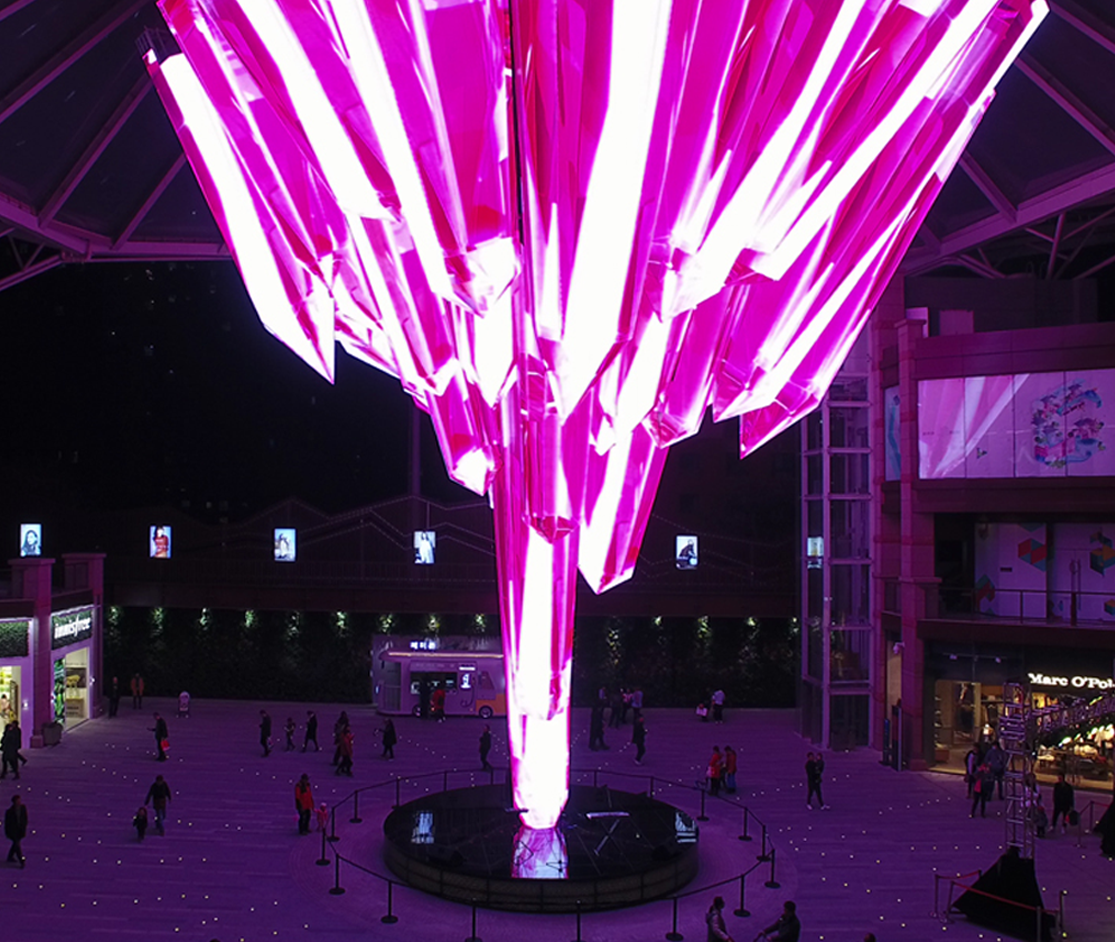 西安老城根Gpark,全球首个3300米公园式多元业态娱乐大道,为最具中国代表性的主题概念商业文化广场,其中晶彩广场中心的水晶锥形屏为最大亮点。德豪BB贝博凭借着在异形屏领域解决方案的实力,创造了众多第一。